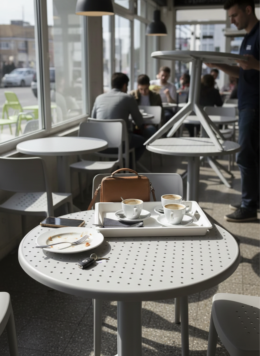 This is especially critical for outdoor dining, high-turnover cafés, food courts, poolside areas, and event venues, where tables are constantly moved, stacked, and cleaned.